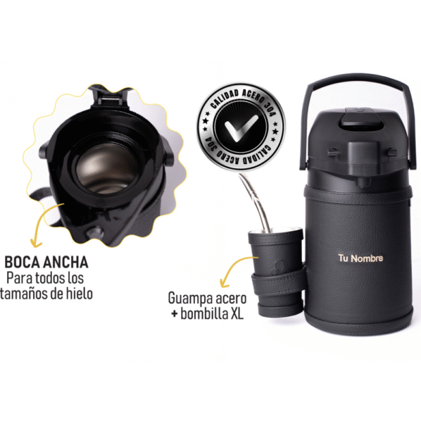TERMO INOX 1.9LTS BOCA ANCHA CUERO NEW (PERSONALIZADO DE NOMBRE + APELLIDO GRATIS SOLO EN COLOR NEGRO)